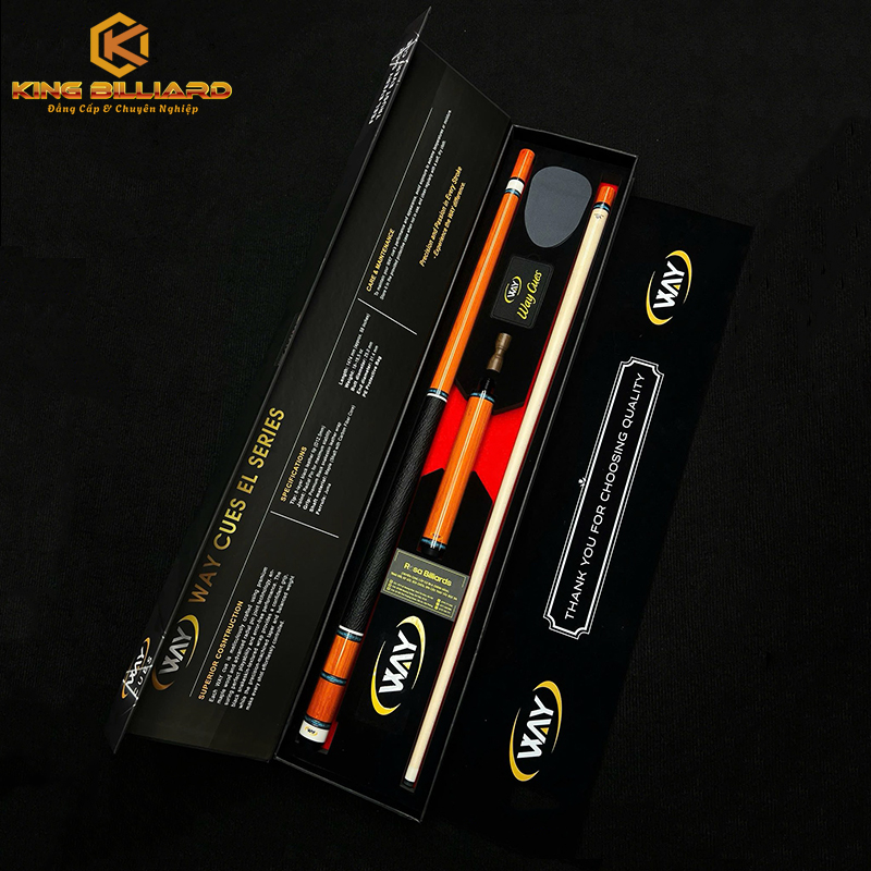 King Billiard hiện là đơn vị phân phối độc quyền nhiều dòng cơ Way Cues mới nhất, trong đó có Way EL09. Sản phẩm luôn có đầy đủ chứng nhận nguồn gốc, đảm bảo khách hàng nhận được hàng chính hãng 100%.